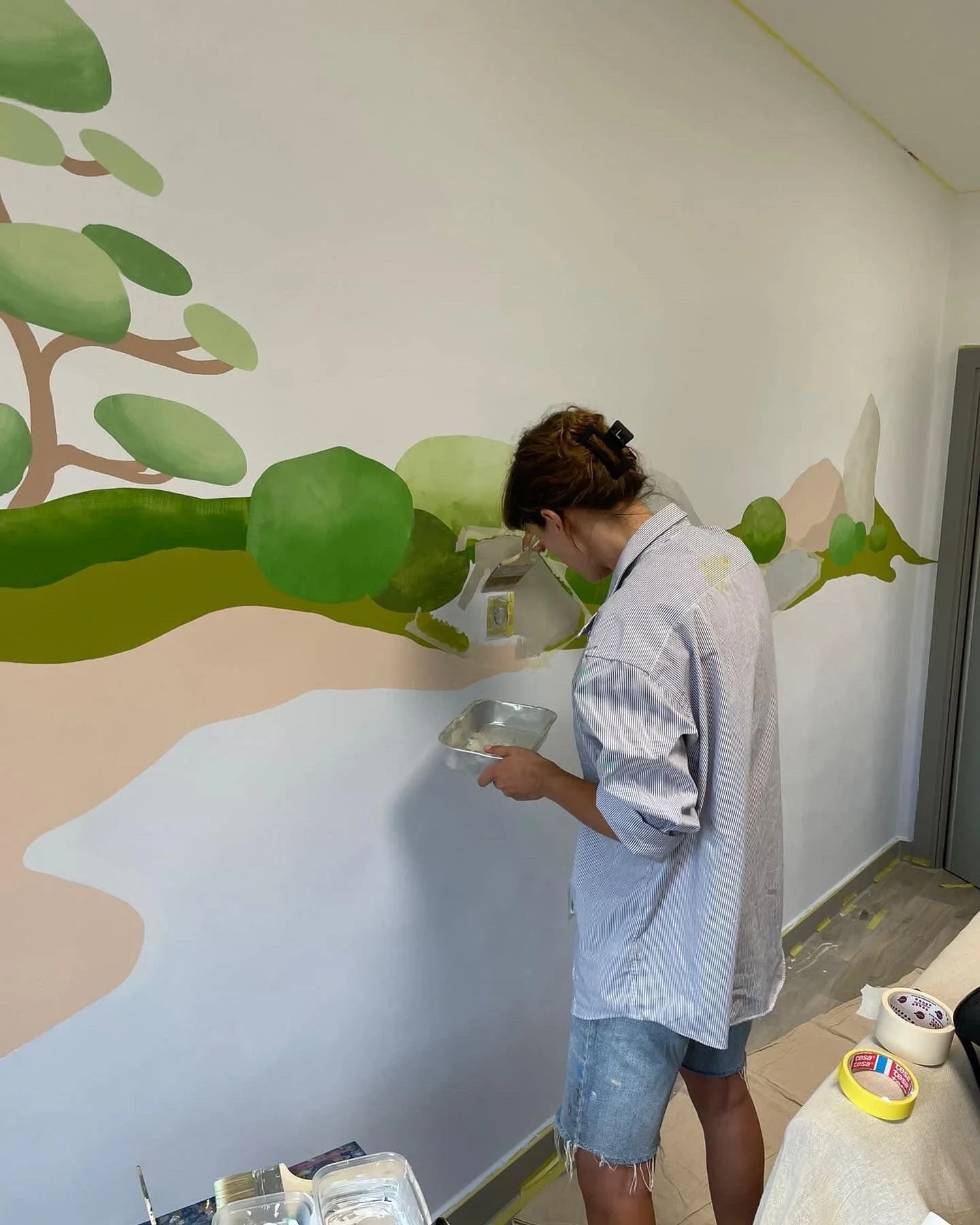 In 2021 I was commissioned by ‘Hospital Rooms’ to create an art piece for a family visiting room in a newly built mental health ward at Torbay Hospital. I completed the mural in June 2022 and dedicated it to my childhood playmate, Ollie.