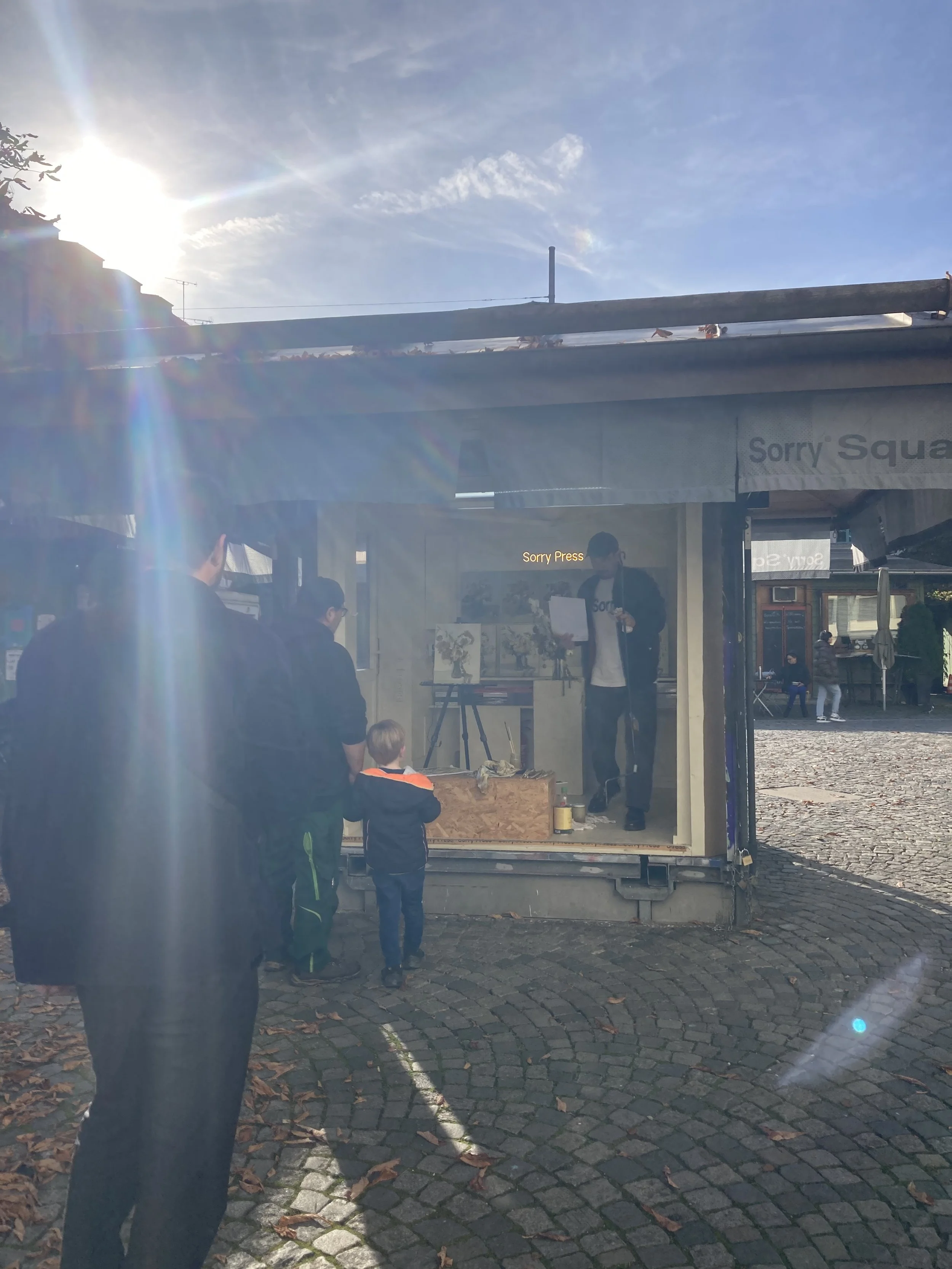 Daily live painting for one week in Sorry Square, Munich. Organised by independant publishing house, Sorry Press.